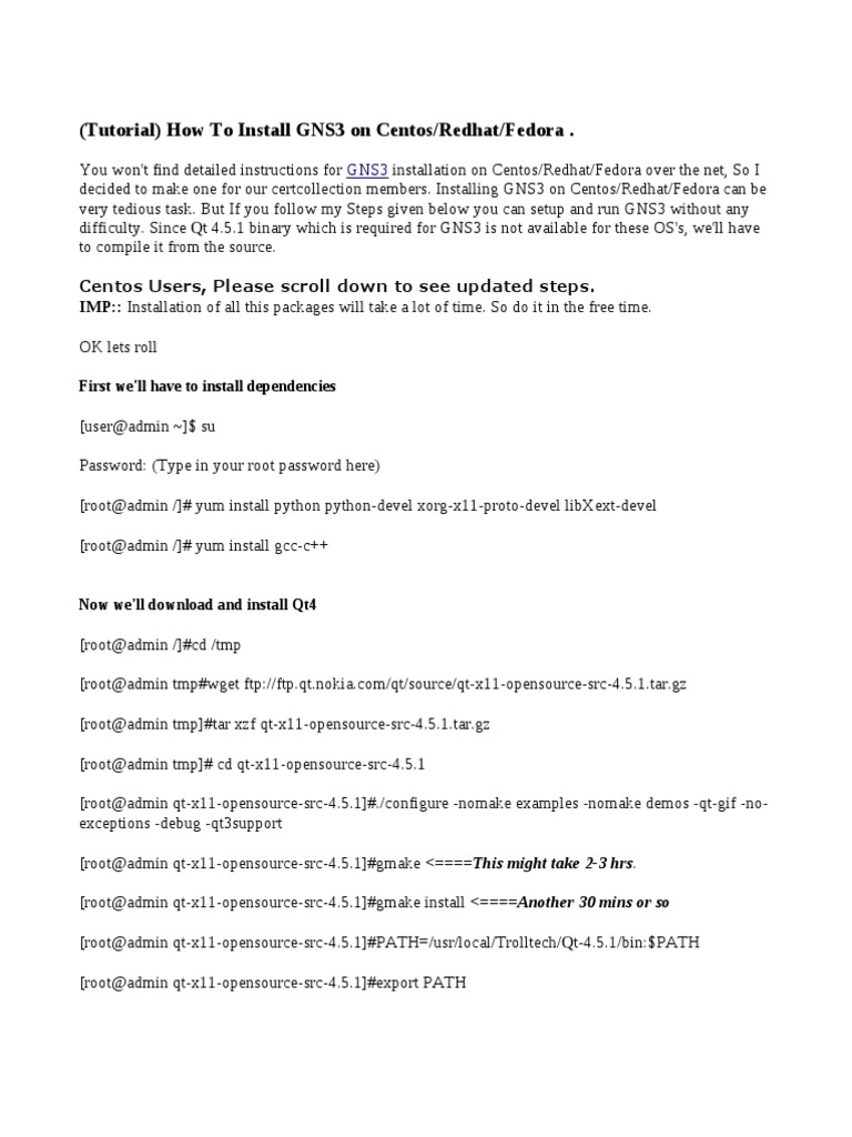 How To Install Gns3 On Centos Redhat Fedora Ios Operating System Families Free 30 Day Trial Scribd
